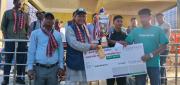 राजविराज, १६ माघ । सप्तरीको खडक नगरपालिका ३ बनरभुल्लास्थित कमलेश्वरी झाेलाई मावि बनरझुल्लाकाे खेलमैदान सञ्चालित खडक नगरपालिका वडास्तरीय फुटबल प्रतियोगिताकाे उपाधी कर्मेनेश्वर युवा क्लब खडक ४ ले हात पारेकाे छ । प्रतियोगिता अन्तर्गत आज शुक्रबार सम्पन्न फाइनलमा जनकल्याण युवा क्लब खडक २ लाई शुन्यका बिरुद्ध एक गाेल अन्तरले पराजित गर्दै उपाधी हात पारेकाे हाे । पहिलाे हाफको १८ ओैं मिनेटमा खडक ४ का सुनिलकुमार चाैधरीले गाेल गरी टीमलाई अग्रता दिलाएका थिए । उपाधीसँगै खडक ४ ले नगद रु. ४१ हजार र शिल्ड हात पारेकाे छ भने उपबिजेता खडक २ ले नगद रु. ३१ हजार र कपमा चित बुझाएको आयाेजक समितिका सन्ताेष पासवान